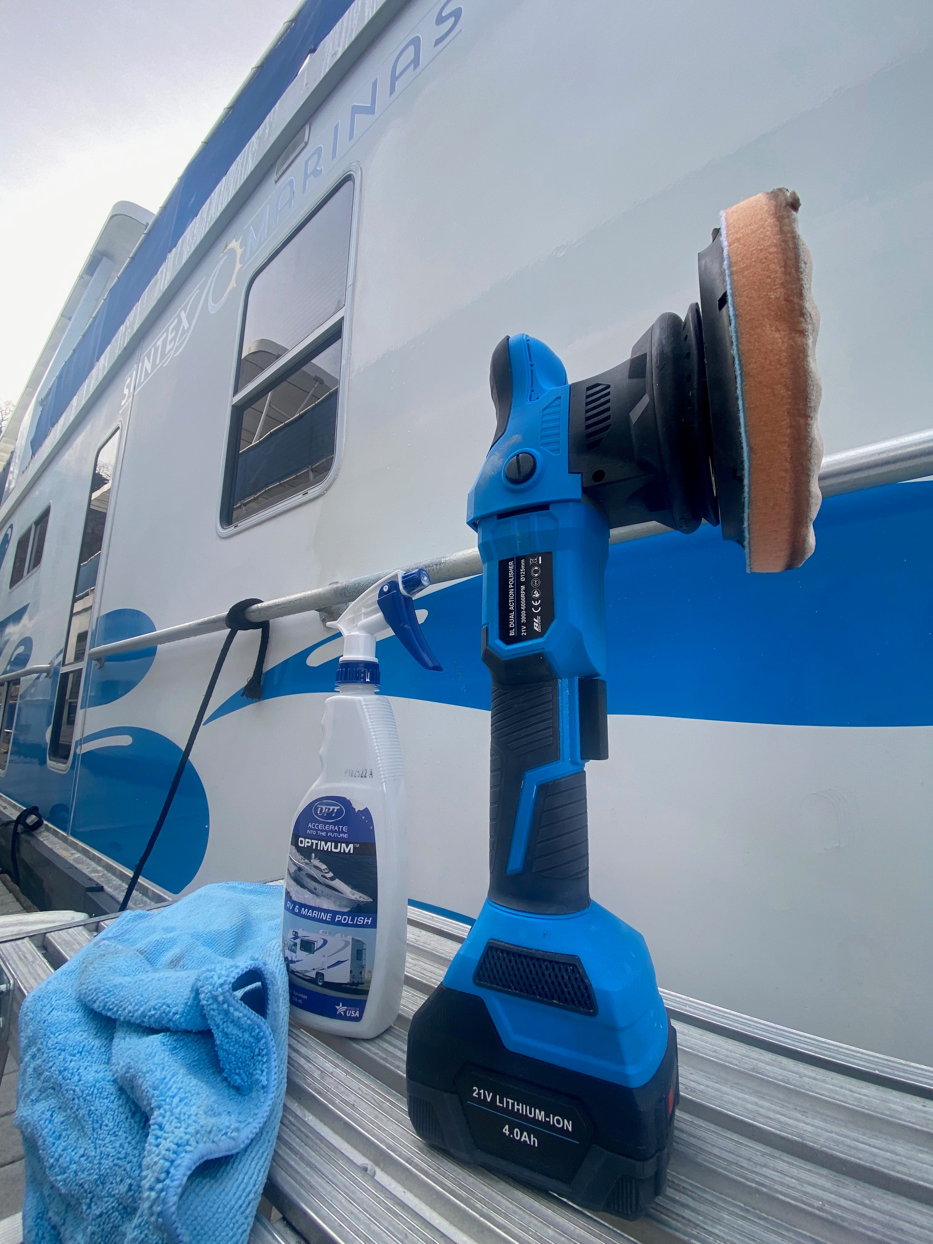 Opti-Coat RV & Marine pre-polymer cross links and forms a continuous protective film on the painted gel coat surfaces it is applied to, similar to a single component isocyanate that forms a clear coat finish.